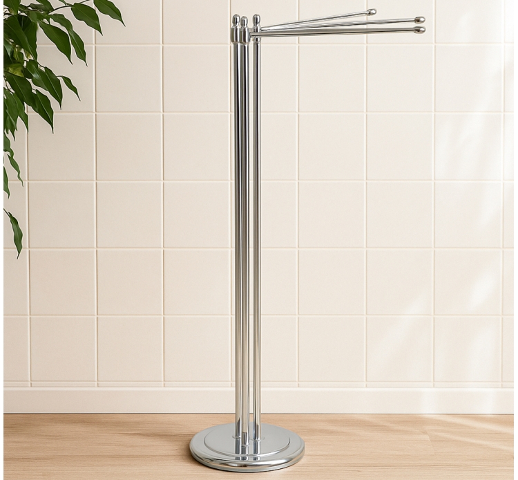 SERVIETTES DE PORTE PLANTAIN DU SOL AVEC TROIS TIGES ROULANTES EN LAITON POUR LES MEUBLES DE SALLE DE BAINS