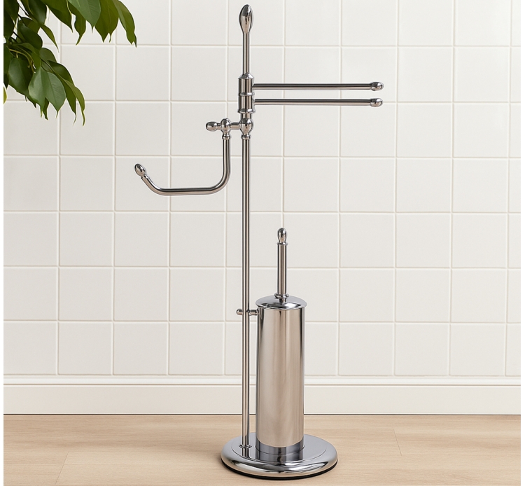 Le planteur proposé est un accessoire multifonctionnel avec une ligne classique,composée d’une porte de portée, porte rouleau de papier et deux pilons pour les lingettes bidet: cet accessoire est entièrement fait de laiton traité zéro plomb de la plus haute qualité et la résistance. La grande attention aux détails des accessoires de salle de bains fabriqués par le laboratoire toscan permet de garantir ces produits, 100% fabriqués en Italie et antirouille.
