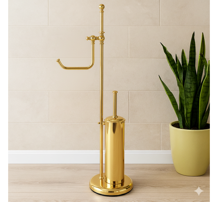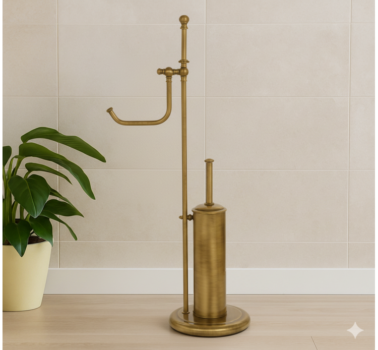 LAMPE DE PLANCHER DE MOBILIER-SALLE DE BAINS AVEC DOUBLE FONCTION DE PORTE-BROSSE WC ET PORTE-PAPIER EN LAITON ET LE STYLE ANGLAIS