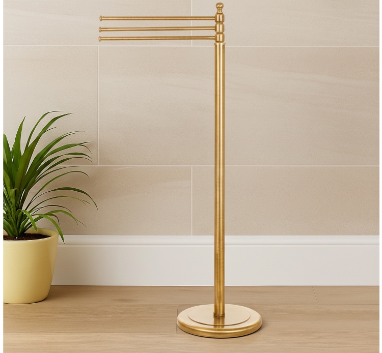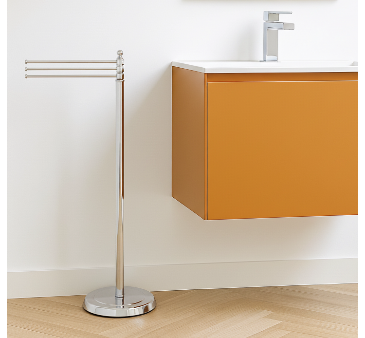 The floor stand towel bar with straight arms, from the bathroom, is a must-have accessory to keep in order the bathroom, lying around in a messy room.