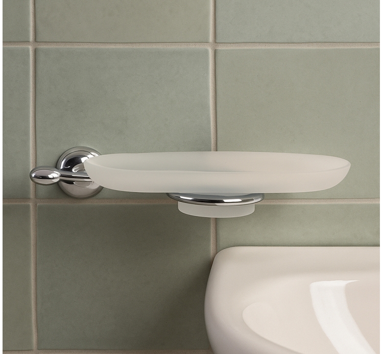 The soap holder double wall line the Wave is fixed to the wall with dowels and screws included in the package. The accessory is made of brass with lead zero safe and hygienic; the soap is in frosted glass neutral.
