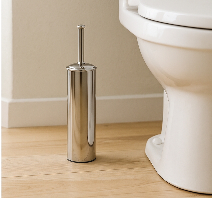 Toilet brush holder from the ground, completely made of brass with lead zero safe and hygienic, then chrome plated/bronzed/gilded or painted, depending on the needs of each individual bathroom. The bristle of the brush may be replaced, in the section parts of the site you will find all the accessories parts for accessories and pedestals.