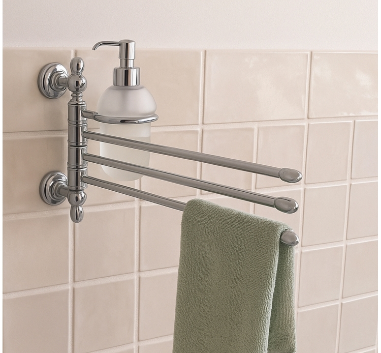 The porta wipes is made with three rolling rods for bidet wipes and a round soap plate in satin glass. All elements rotate each other to adapt them to every space need. The item is easily fixed to the wall with screws and dowels that guarantee the best possible stability. This accessory like the others in idearredobagno's collections is handcrafted with a high quality process and is guaranteed anti-rust.
