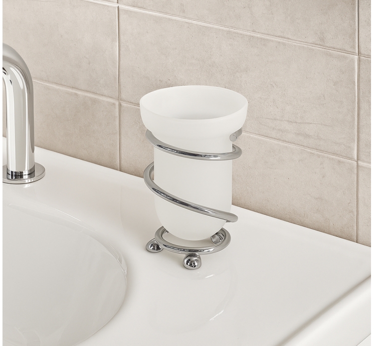 Scegli un bicchiere porta spazzolini capace di ordinare il tuo bagno senza trascurare lo stile: vetro satinato lavorato in Italia per il bicchiere e ottone cromato per il supporto ne garantiranno la qualità nel tempo.