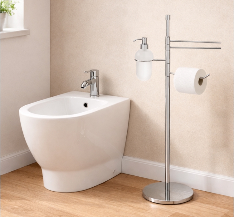Piantana multi funzione porta salviette bidet a due aste con porta carta e dispenser
