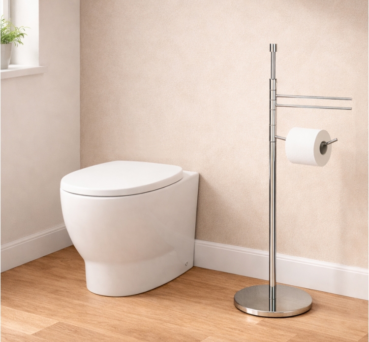 PIANTANA FREE STANDING COMPOSTA DI PORTA SALVIETTE DA BIDET CON PORTA ROTOLO CARTA IGIENICA