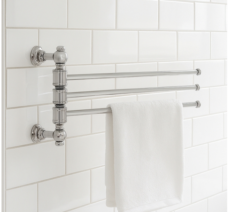 Porta asciugamano da bidet stile classico a tre aste rotabili da fissare a parete con tasselli